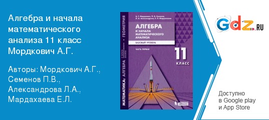 ГДЗ по алгебре и началам математического анализа 11 класс Мордкович А.Г. поможет успешно справиться с изучением этого предмета, а также подготовиться к экзаменам, так как содержит множество задач, которые могут быть аналогичны тем, которые будут на экзамене. Пособие полностью соответствует всем требованиям федерального государственного образовательного стандарта полного среднего образования.
